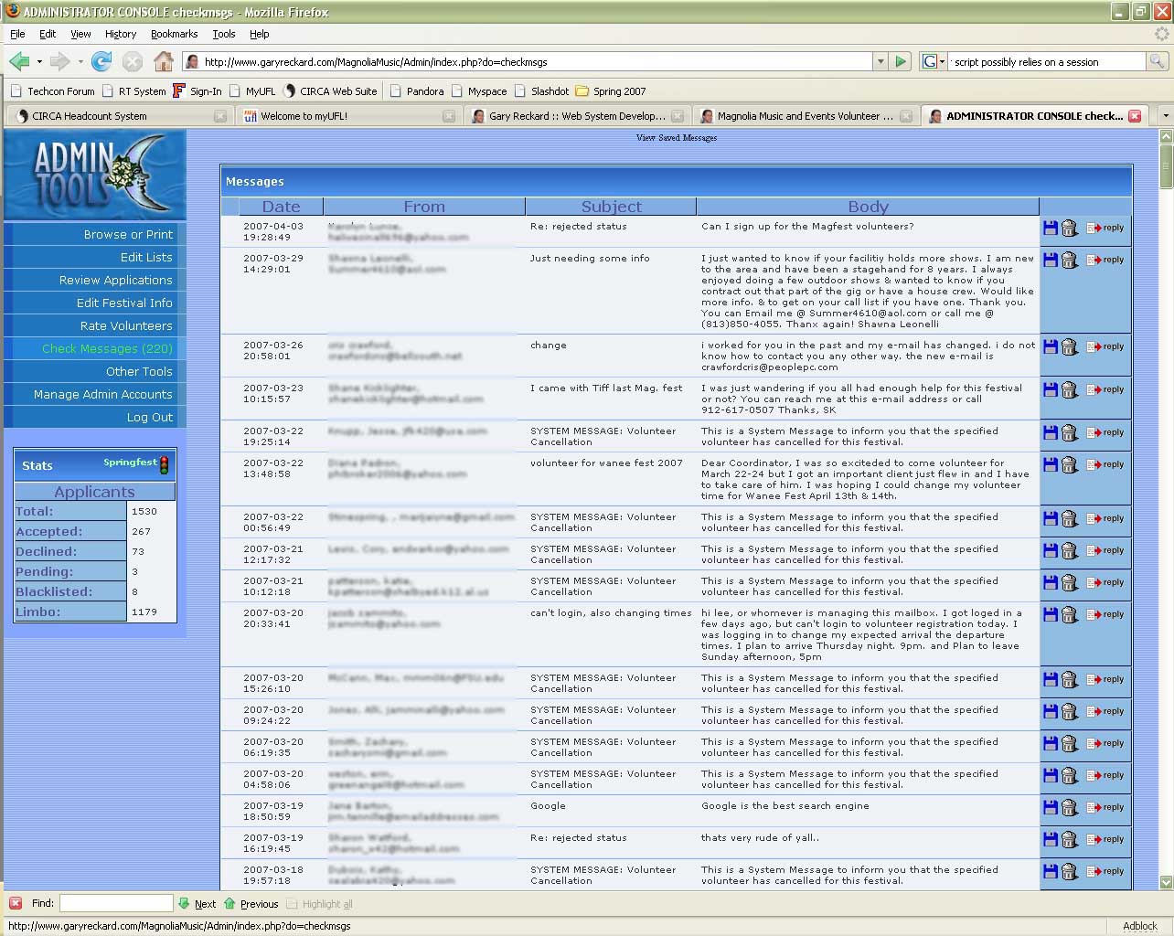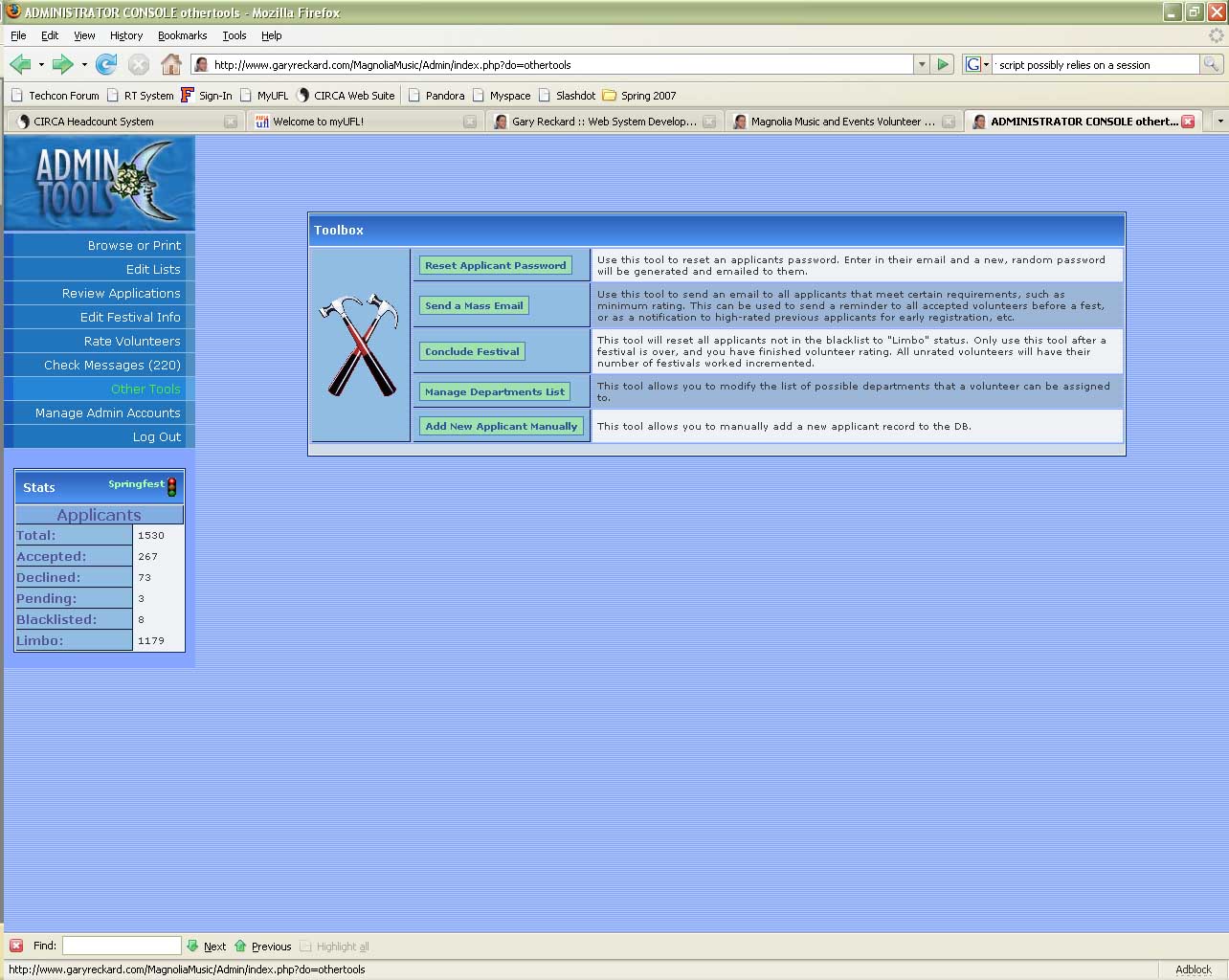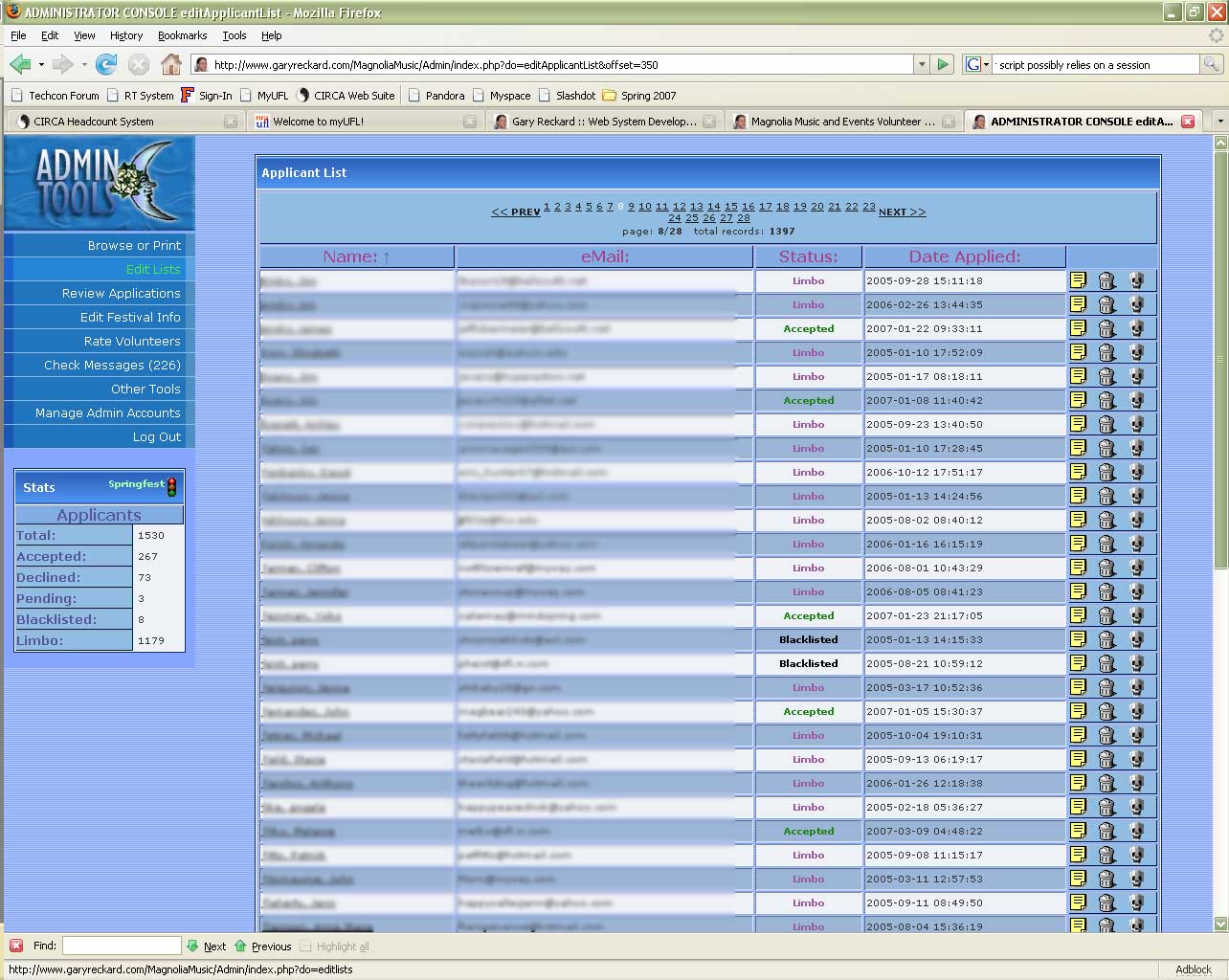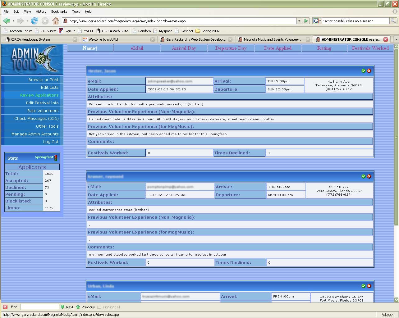This is where I came in. I developed a system that allows volunteers to sign up for the different festivals, keeps lasting and detailed records of every volunteer, and provides a comprehensive toolset for the administrator.